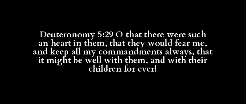 Deuteronomy 5:29 O that there were such an heart in them, that they would fear me, and keep all my commandments always, that it might be well with them, and with their children for ever!