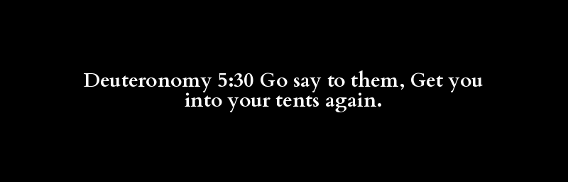 Deuteronomy 5:30 Go say to them, Get you into your tents again.