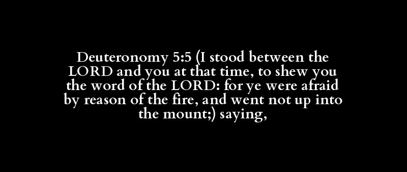 Deuteronomy 5:5 (I stood between the LORD and you at that time, to shew you the word of the LORD: for ye were afraid by reason of the fire, and went not up into the mount;) saying,