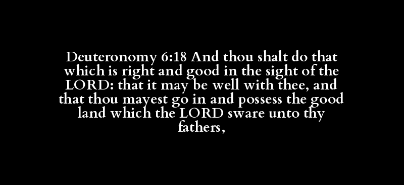Deuteronomy 6:18 And thou shalt do that which is right and good in the sight of the LORD: that it may be well with thee, and that thou mayest go in and possess the good land which the LORD sware unto thy fathers,