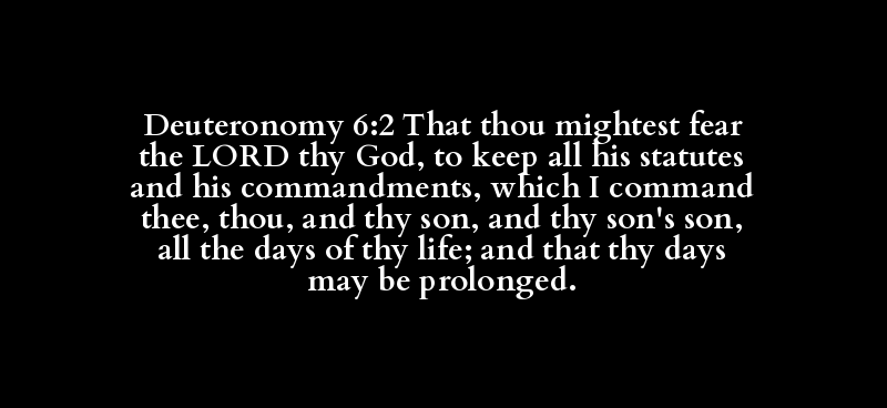 Deuteronomy 6:2 That thou mightest fear the LORD thy God, to keep all his statutes and his commandments, which I command thee, thou, and thy son, and thy son's son, all the days of thy life; and that thy days may be prolonged.