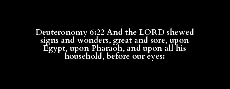 Deuteronomy 6:22 And the LORD shewed signs and wonders, great and sore, upon Egypt, upon Pharaoh, and upon all his household, before our eyes: