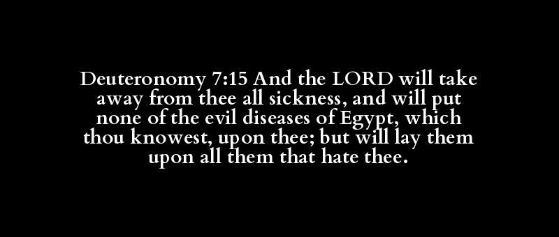 Deuteronomy 7:15 And the LORD will take away from thee all sickness, and will put none of the evil diseases of Egypt, which thou knowest, upon thee; but will lay them upon all them that hate thee.