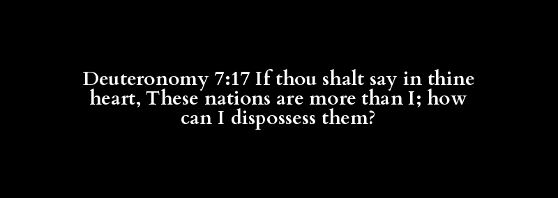 Deuteronomy 7:17 If thou shalt say in thine heart, These nations are more than I; how can I dispossess them?