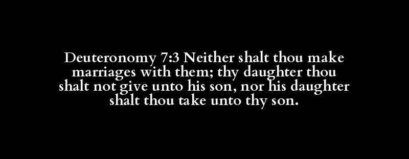 Deuteronomy 7:3 Neither shalt thou make marriages with them; thy daughter thou shalt not give unto his son, nor his daughter shalt thou take unto thy son.
