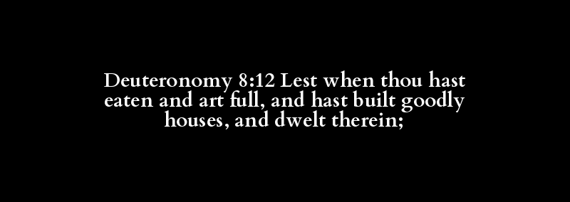 Deuteronomy 8:12 Lest when thou hast eaten and art full, and hast built goodly houses, and dwelt therein;