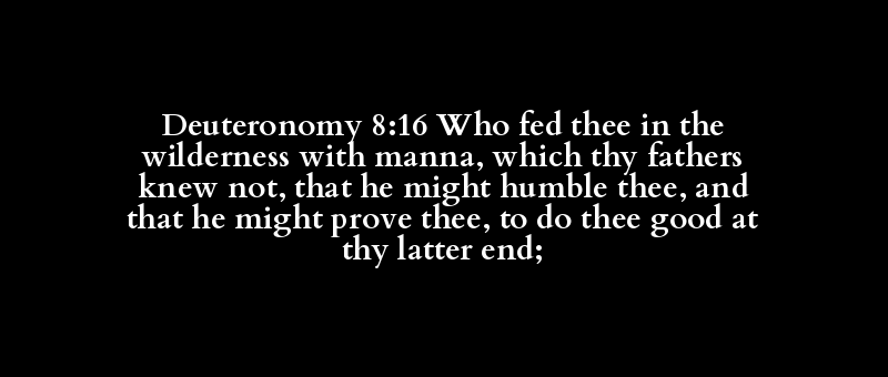 Deuteronomy 8:16 Who fed thee in the wilderness with manna, which thy fathers knew not, that he might humble thee, and that he might prove thee, to do thee good at thy latter end;