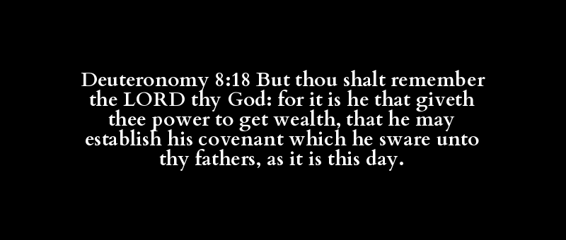 Deuteronomy 8:18 But thou shalt remember the LORD thy God: for it is he that giveth thee power to get wealth, that he may establish his covenant which he sware unto thy fathers, as it is this day.