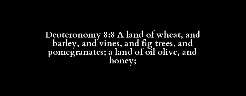 Deuteronomy 8:8 A land of wheat, and barley, and vines, and fig trees, and pomegranates; a land of oil olive, and honey;