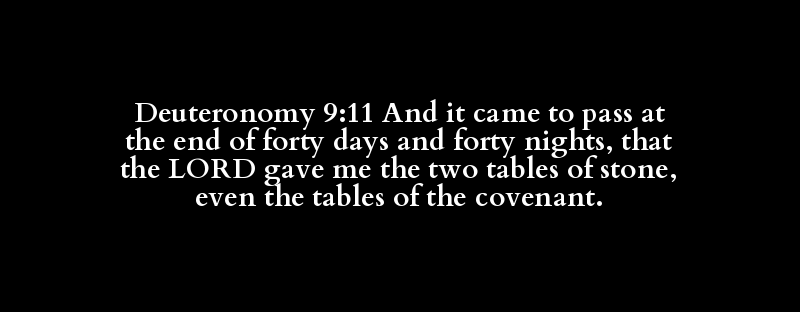 Deuteronomy 9:11 And it came to pass at the end of forty days and forty nights, that the LORD gave me the two tables of stone, even the tables of the covenant.