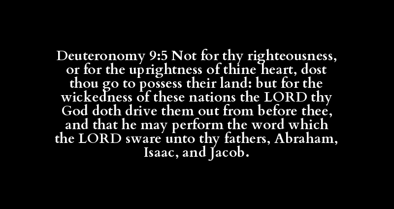 Deuteronomy 9:5 Not for thy righteousness, or for the uprightness of thine heart, dost thou go to possess their land: but for the wickedness of these nations the LORD thy God doth drive them out from before thee, and that he may perform the word which the LORD sware unto thy fathers, Abraham, Isaac, and Jacob.