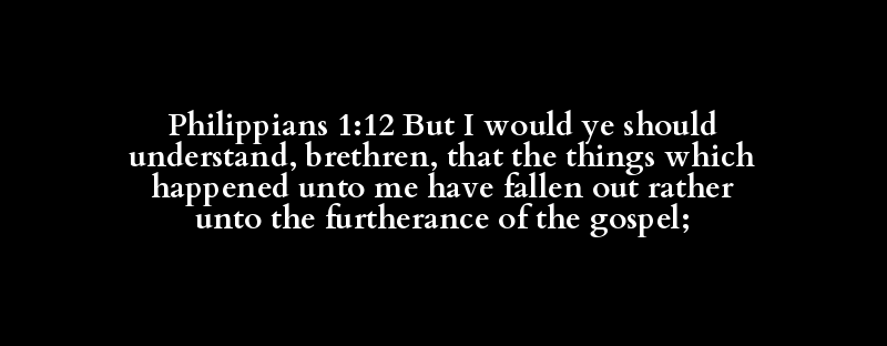 Philippians 1:12 But I would ye should understand, brethren, that the things which happened unto me have fallen out rather unto the furtherance of the gospel;