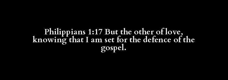 Philippians 1:17 But the other of love, knowing that I am set for the defence of the gospel.