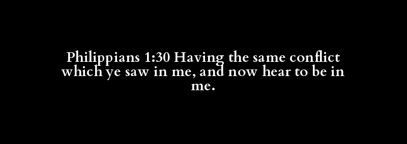 Philippians 1:30 Having the same conflict which ye saw in me, and now hear to be in me.