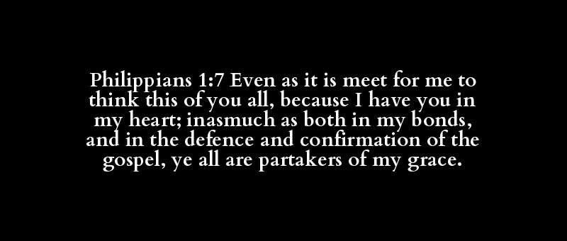 | καθώς | ἐστί | δίκαιος | ἐμοί | φρονέω | τοῦτο | ὑπέρ | ὑμῶν | πᾶς | διά | ἔχω | ὑμᾶς | ἐν | μέ | καρδία | τέ | ἐν | μοῦ | δεσμόν | καί | ἀπολογία | καί | βεβαίωσις | εὐαγγέλιον | ὑμᾶς | πᾶς | ὤν | συγκοινωνός | μοῦ | χάρις |