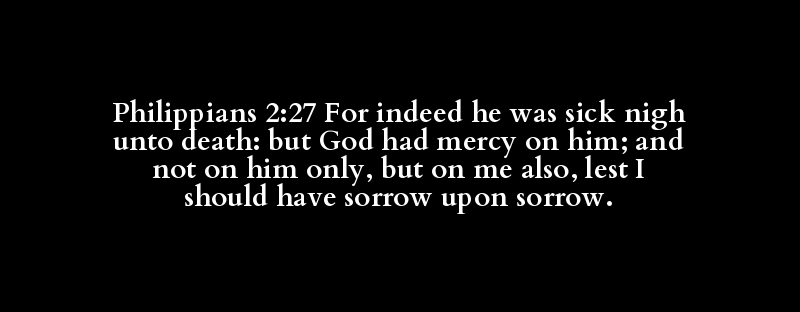 Philippians 2:27 For indeed he was sick nigh unto death: but God had mercy on him; and not on him only, but on me also, lest I should have sorrow upon sorrow.
