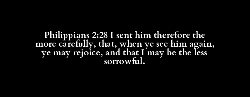 Philippians 2:28 I sent him therefore the more carefully, that, when ye see him again, ye may rejoice, and that I may be the less sorrowful.