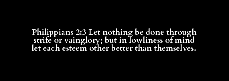 Philippians 2:3 Let nothing be done through strife or vainglory; but in lowliness of mind let each esteem other better than themselves.