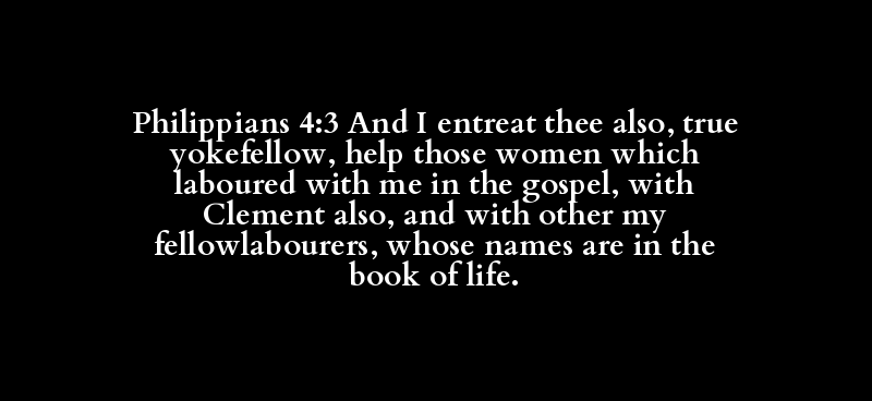 Philippians 4:3 And I entreat thee also, true yokefellow, help those women which laboured with me in the gospel, with Clement also, and with other my fellowlabourers, whose names are in the book of life.