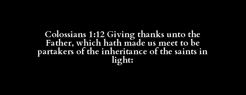 Colossians 1:12 Giving thanks unto the Father, which hath made us meet to be partakers of the inheritance of the saints in light: