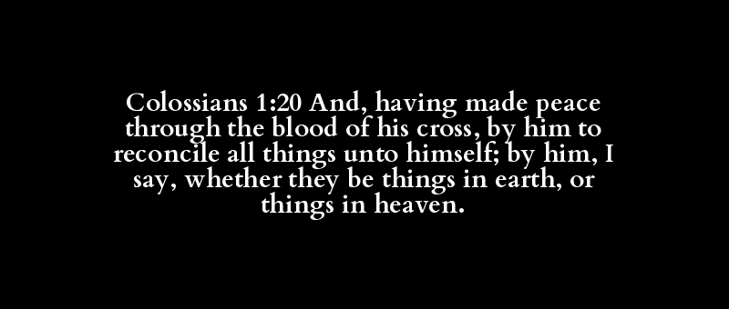 Colossians 1:20 And, having made peace through the blood of his cross, by him to reconcile all things unto himself; by him, I say, whether they be things in earth, or things in heaven.