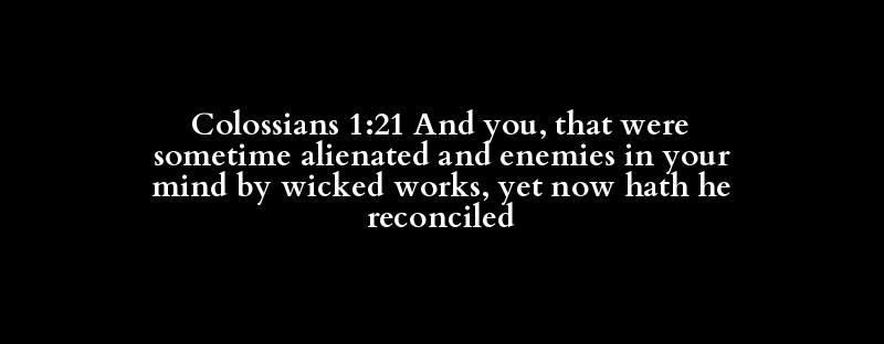 Colossians 1:21 And you, that were sometime alienated and enemies in your mind by wicked works, yet now hath he reconciled