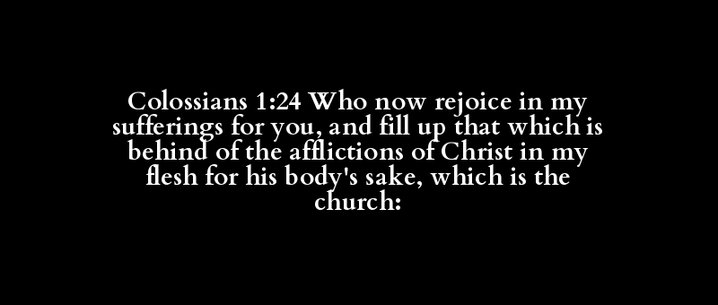 Colossians 1:24 Who now rejoice in my sufferings for you, and fill up that which is behind of the afflictions of Christ in my flesh for his body's sake, which is the church: