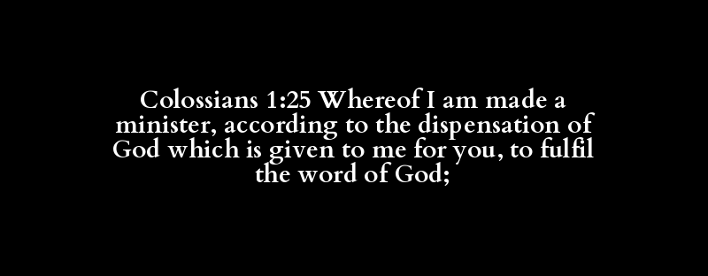 Colossians 1:25 Whereof I am made a minister, according to the dispensation of God which is given to me for you, to fulfil the word of God;