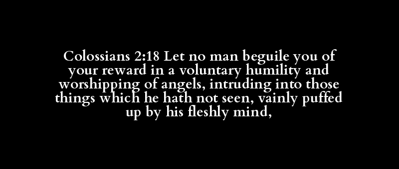 Colossians 2:18 Let no man beguile you of your reward in a voluntary humility and worshipping of angels, intruding into those things which he hath not seen, vainly puffed up by his fleshly mind,