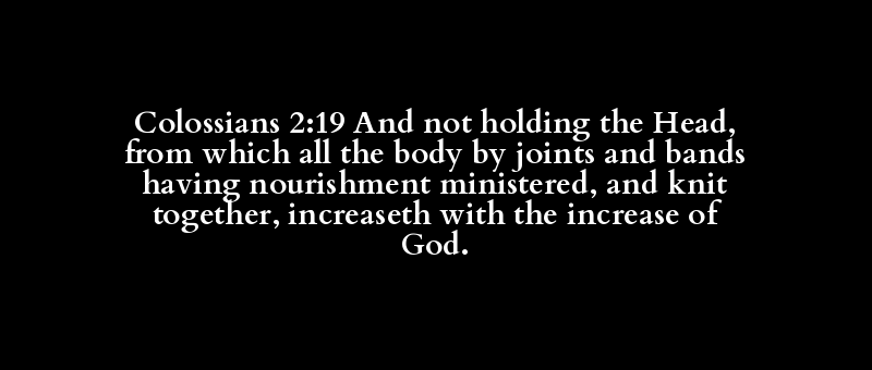 Colossians 2:19 And not holding the Head, from which all the body by joints and bands having nourishment ministered, and knit together, increaseth with the increase of God.