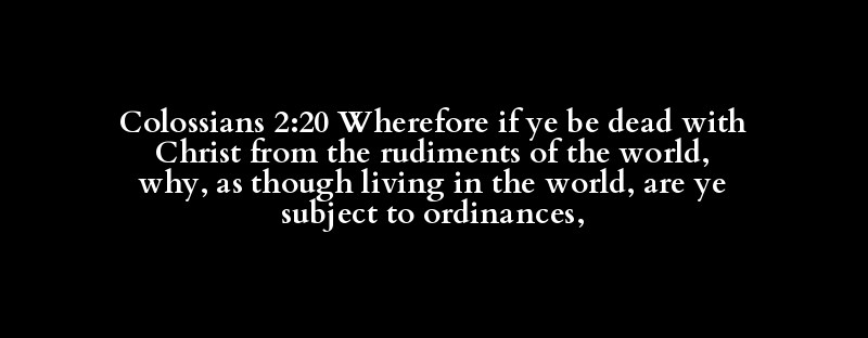 Colossians 2:20 Wherefore if ye be dead with Christ from the rudiments of the world, why, as though living in the world, are ye subject to ordinances,