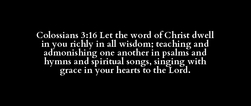 Colossians 3:16 Let the word of Christ dwell in you richly in all wisdom; teaching and admonishing one another in psalms and hymns and spiritual songs, singing with grace in your hearts to the Lord.