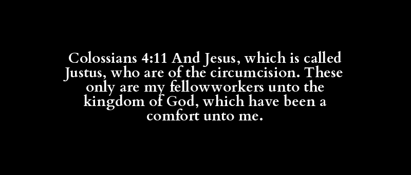 Colossians 4:11 And Jesus, which is called Justus, who are of the circumcision. These only are my fellowworkers unto the kingdom of God, which have been a comfort unto me.