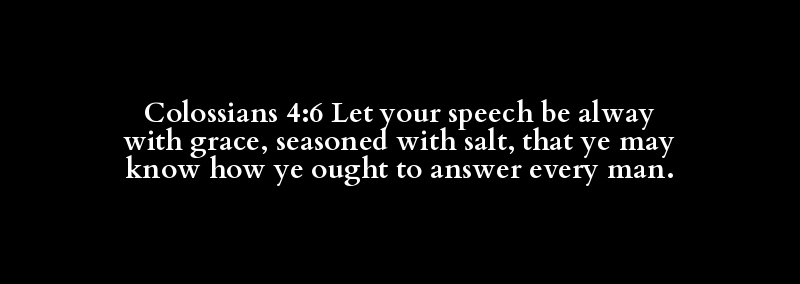 Colossians 4:6 Let your speech be alway with grace, seasoned with salt, that ye may know how ye ought to answer every man.