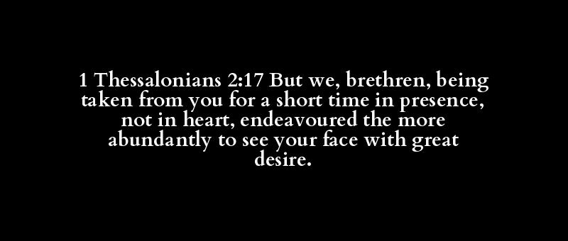 1 Thessalonians 2:17 But we, brethren, being taken from you for a short time in presence, not in heart, endeavoured the more abundantly to see your face with great desire.