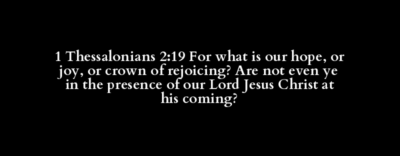 1 Thessalonians 2:19 For what is our hope, or joy, or crown of rejoicing? Are not even ye in the presence of our Lord Jesus Christ at his coming?