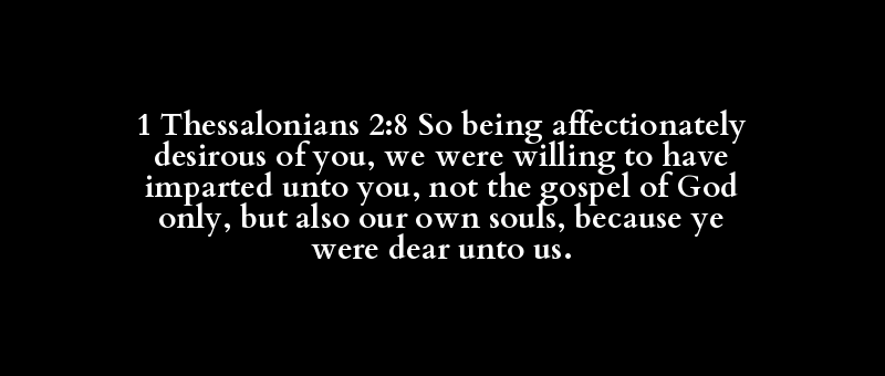 1 Thessalonians 2:8 So being affectionately desirous of you, we were willing to have imparted unto you, not the gospel of God only, but also our own souls, because ye were dear unto us.