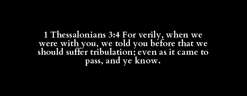 1 Thessalonians 3:4 For verily, when we were with you, we told you before that we should suffer tribulation; even as it came to pass, and ye know.