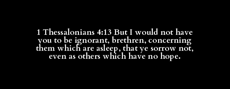 1 Thessalonians 4:13 But I would not have you to be ignorant, brethren, concerning them which are asleep, that ye sorrow not, even as others which have no hope.