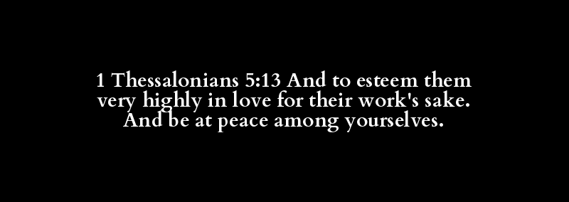 1 Thessalonians 5:13 And to esteem them very highly in love for their work's sake. And be at peace among yourselves.