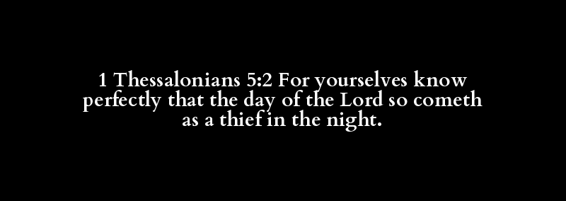 1 Thessalonians 5:2 For yourselves know perfectly that the day of the Lord so cometh as a thief in the night.