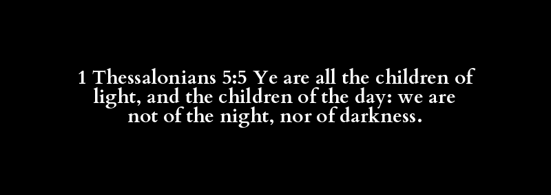 1 Thessalonians 5:5 Ye are all the children of light, and the children of the day: we are not of the night, nor of darkness.