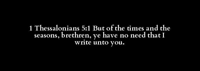 1 Thessalonians 5:1 But of the times and the seasons, brethren, ye have no need that I write unto you.
