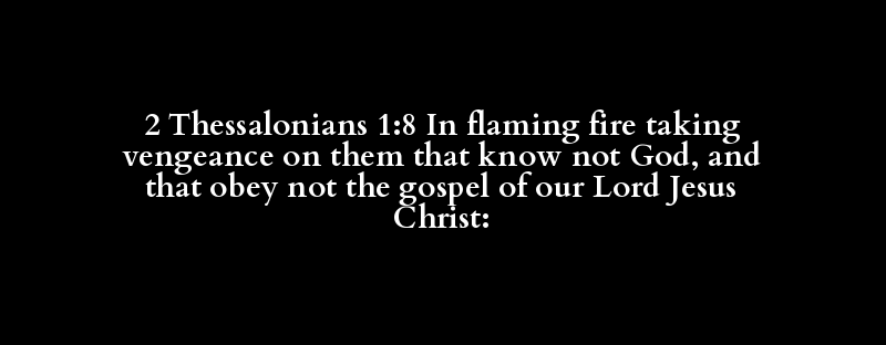 2 Thessalonians 1:8 In flaming fire taking vengeance on them that know not God, and that obey not the gospel of our Lord Jesus Christ: