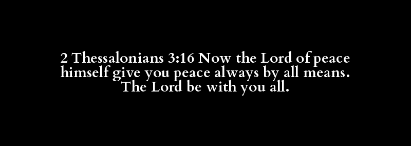 2 Thessalonians 3:16 Now the Lord of peace himself give you peace always by all means. The Lord be with you all.