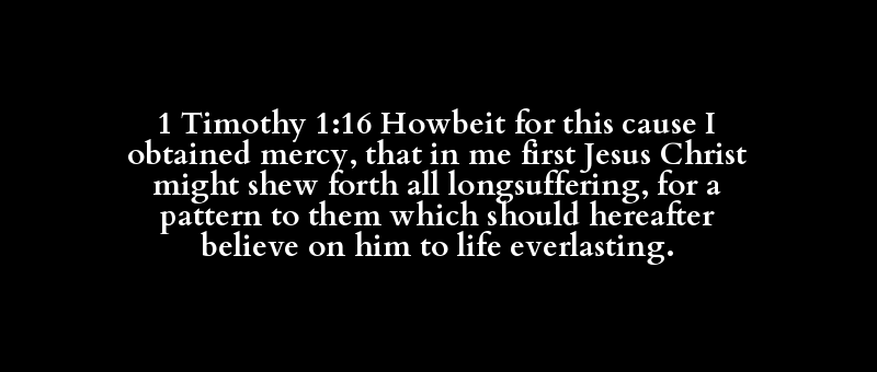 1 Timothy 1:16 Howbeit for this cause I obtained mercy, that in me first Jesus Christ might shew forth all longsuffering, for a pattern to them which should hereafter believe on him to life everlasting.