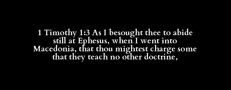1 Timothy 1:3 As I besought thee to abide still at Ephesus, when I went into Macedonia, that thou mightest charge some that they teach no other doctrine,