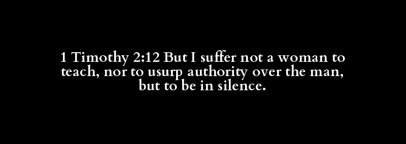 1 Timothy 2:12 But I suffer not a woman to teach, nor to usurp authority over the man, but to be in silence.