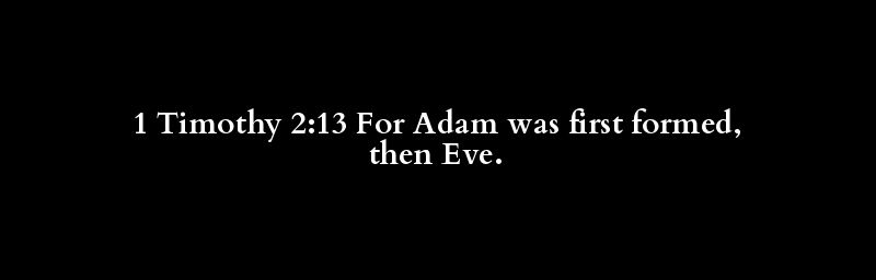 1 Timothy 2:13 For Adam was first formed, then Eve.