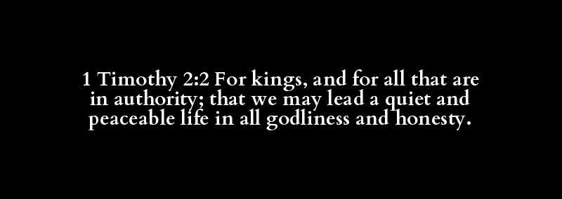 1 Timothy 2:2 For kings, and for all that are in authority; that we may lead a quiet and peaceable life in all godliness and honesty.